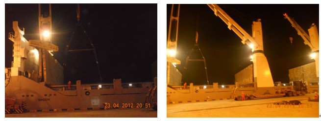 貨船靠港后,專人配合客戶辦理碼頭相關(guān)接貨手續(xù),服從碼頭調(diào)度室安排,統(tǒng)一時(shí)間,合理調(diào)配車輛,共同做好船邊直裝工作。其過(guò)程正常有序,同時(shí)認(rèn)真做好了設(shè)備在車上的落點(diǎn)、固定和防雨等相關(guān)的工作。